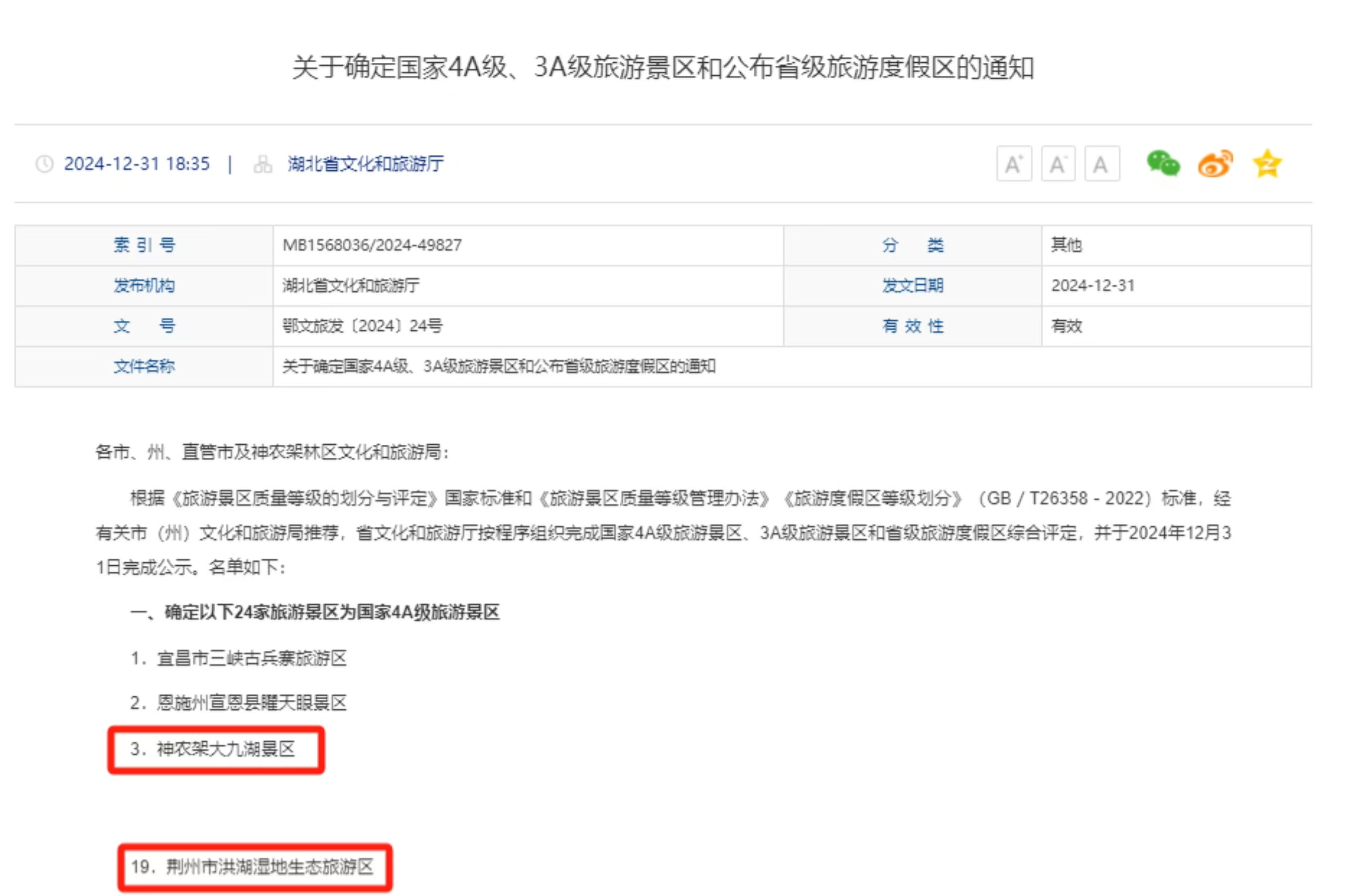 湖北文旅集團(tuán)新增兩家國(guó)家4A級(jí)旅游景區(qū)。近日,湖北省文化和旅游廳發(fā)布公告,經(jīng)湖北省旅游景區(qū)質(zhì)量等級(jí)評(píng)定委員會(huì)組織評(píng)定,集團(tuán)旗下神農(nóng)架大九湖景區(qū)、荊州市洪湖濕地生態(tài)旅游區(qū)獲評(píng)“國(guó)家4A級(jí)旅游景區(qū)”。圍繞4A創(chuàng)建,神農(nóng)架大九湖景區(qū)堅(jiān)持生態(tài)科技賦能,堅(jiān)持升級(jí)科普游覽,堅(jiān)持優(yōu)化服務(wù)管理,塑造突出的生態(tài)旅游品牌形象。洪湖濕地生態(tài)旅游區(qū)對(duì)標(biāo)國(guó)內(nèi)一流旅游景區(qū),從硬件提檔、軟件提質(zhì)、服務(wù)提升三方面著力,景區(qū)面貌煥然一新。